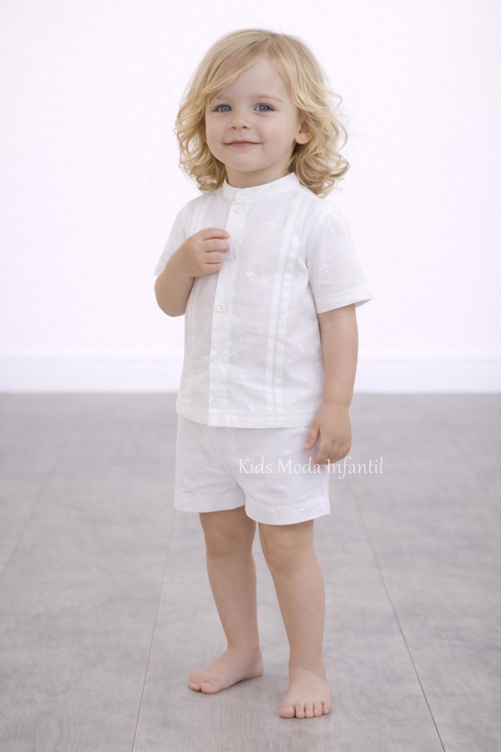 Conjunto bebé niño bautizo ceremonia y arras blanco bordado camisa y pantalón corto – DBB Collection | Kids Moda Infantil