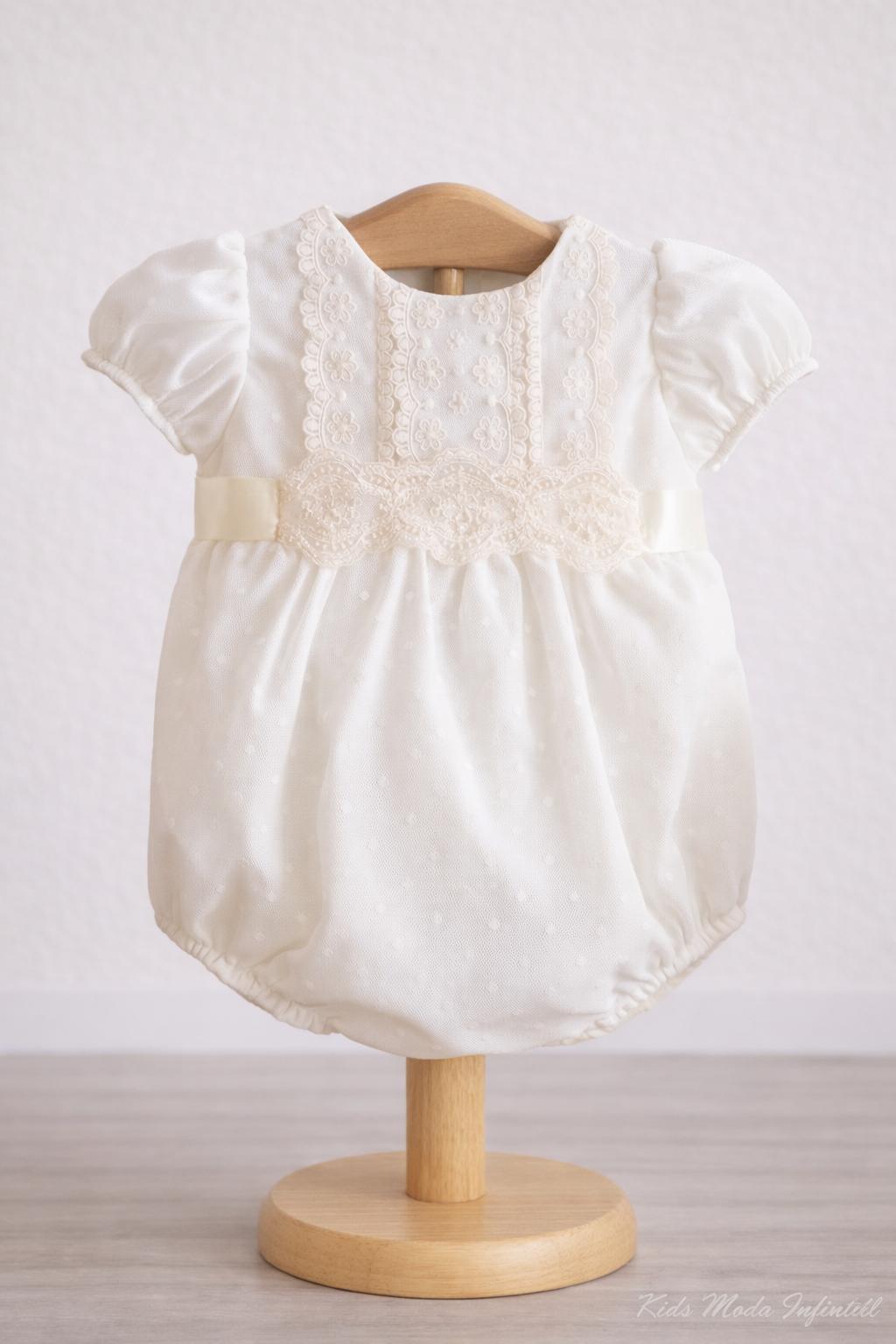 Pelele bautizo bebe tul beige Eva Martínez Artesanía familia 1