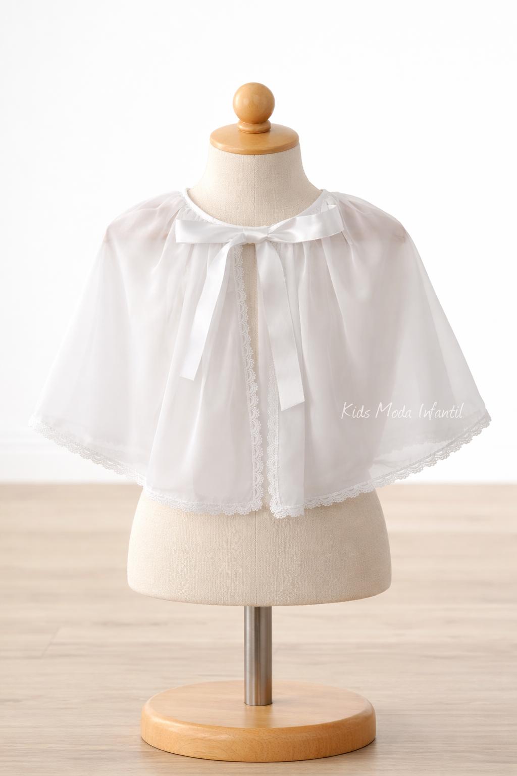 Precioso Faldón bautizo de gasa blanco extra largo (con posibilidad de hacerse en faldón largo y faldón corto, ver opciones de prenda) de manga corta (con posibilidad de hacer manga larga y sin manga, ver en opciones de prenda). El faldón está confeccionado con tejido gasa blanco con bonito cuello redondeado, pechera de jaretas y falda preciosa, con puntillas bordadas en horizontal y vertical, rematando falda con puntilla gasa bordada flores quedando un perfecto faldón de bautizo bebe. Luce fajín de cinta raso celeste. Su espalda se abrocha con botones. Este faldón de bebe no incluye cubre pañal, capota y capa, pero si que lo puede añadir en opciones de la prenda. Capa*: Se indica en etiqueta interna talla única, ya que todas las tallas tienen la misma medida estándar