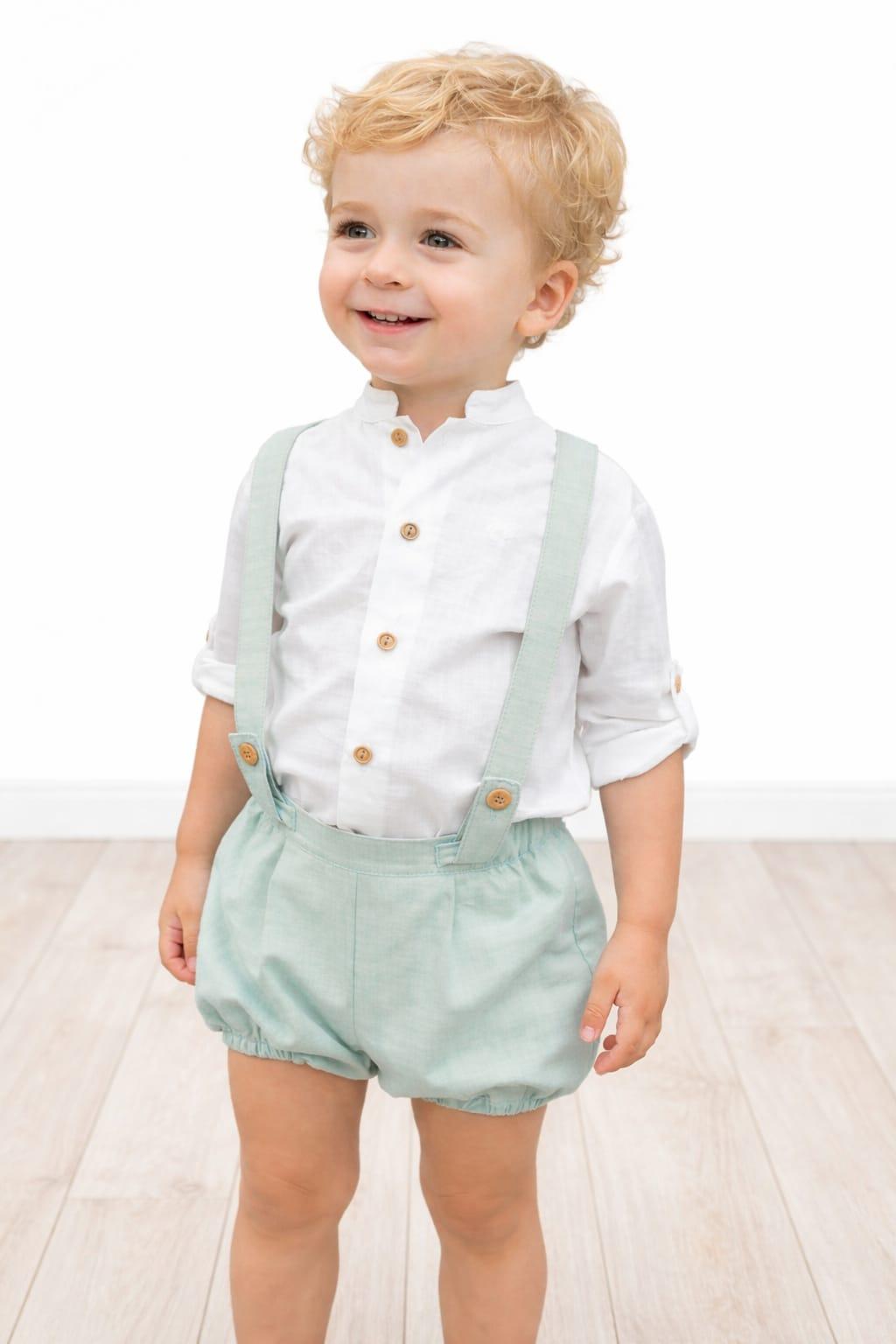 Conjunto niño ceremonia peto verde agua bombacho y camisa blanco roto coco acqua ceremonia 60425