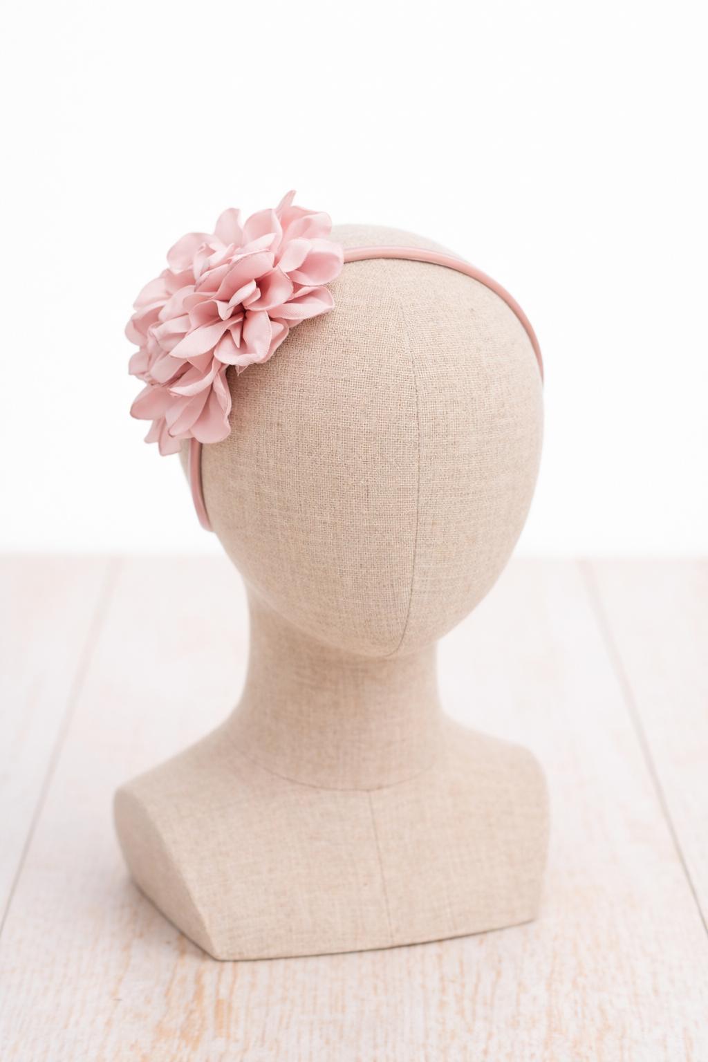 Diadema ceremonia de niña con 2 flores en un precioso tejido rosa empolvado. Espectacular diadema de ceremonia para niñas. Desde bebe hasta 6 años aproximadamente.