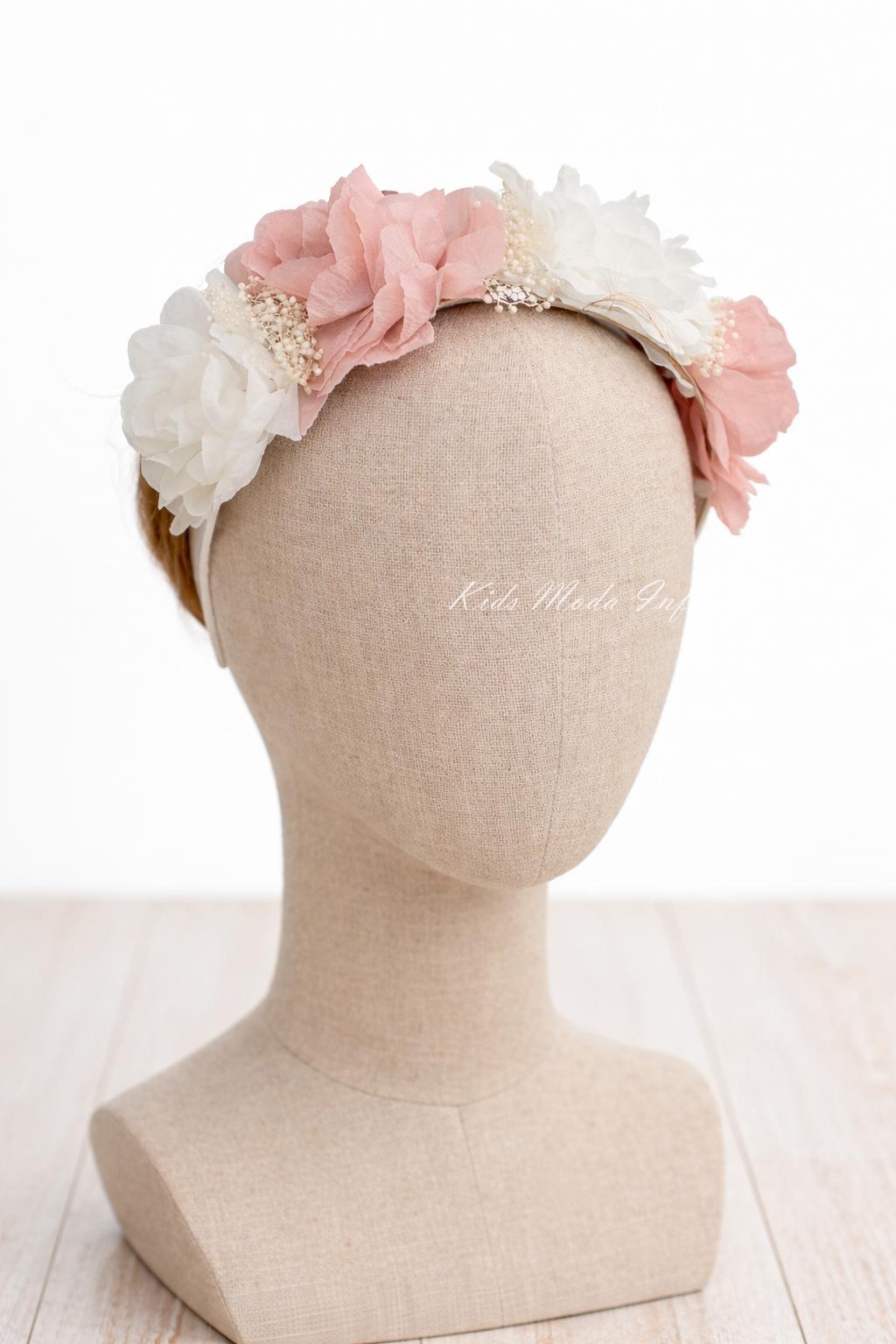 Diadema ceremonia niña de flores rosa empolvado y blancas Coco Acqua Ceremonia 201108022B