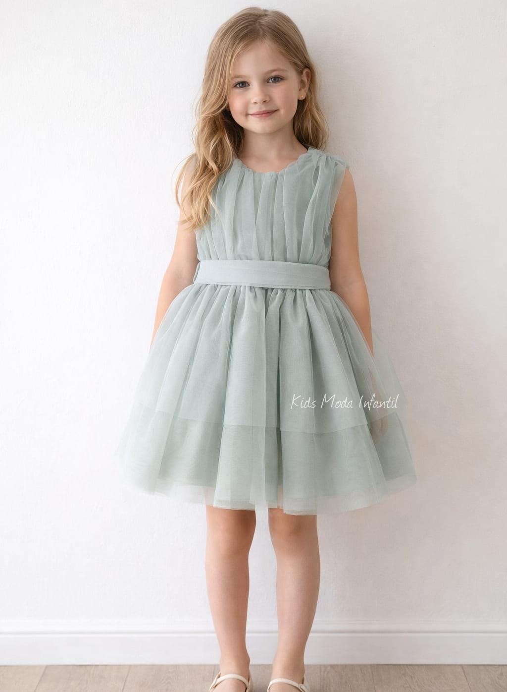 Vestido ceremonia niña de tul verde agua Nekenia 2521820