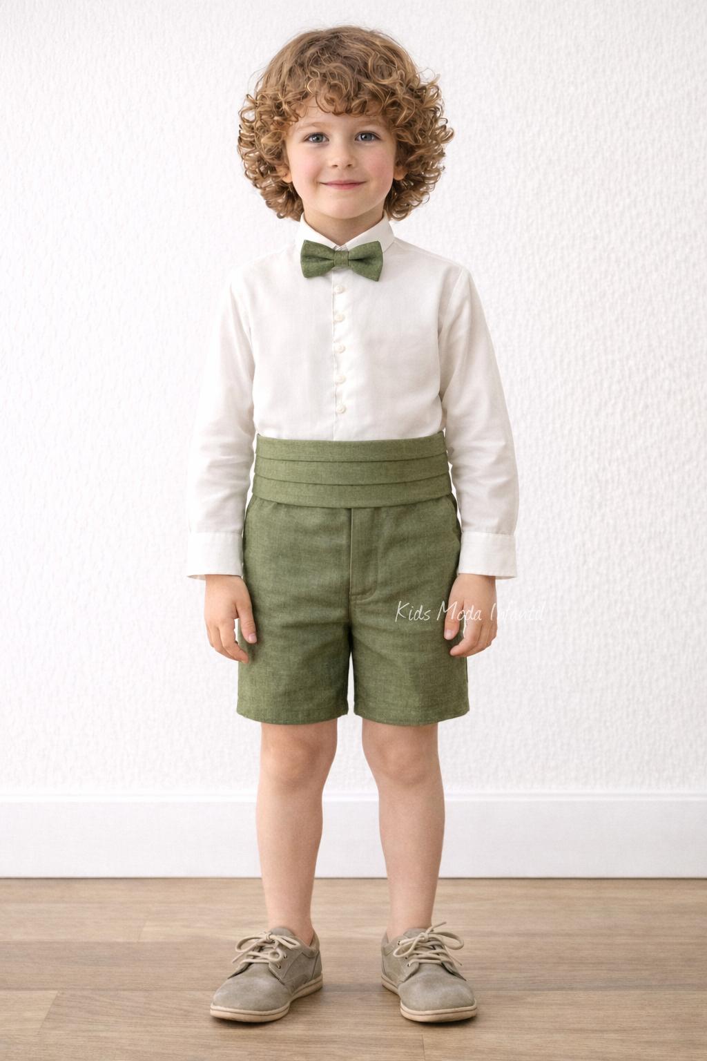 Conjunto ceremonia niño camisa y bermuda chino verde oliva de Eva Martinez Artesanía