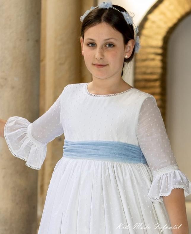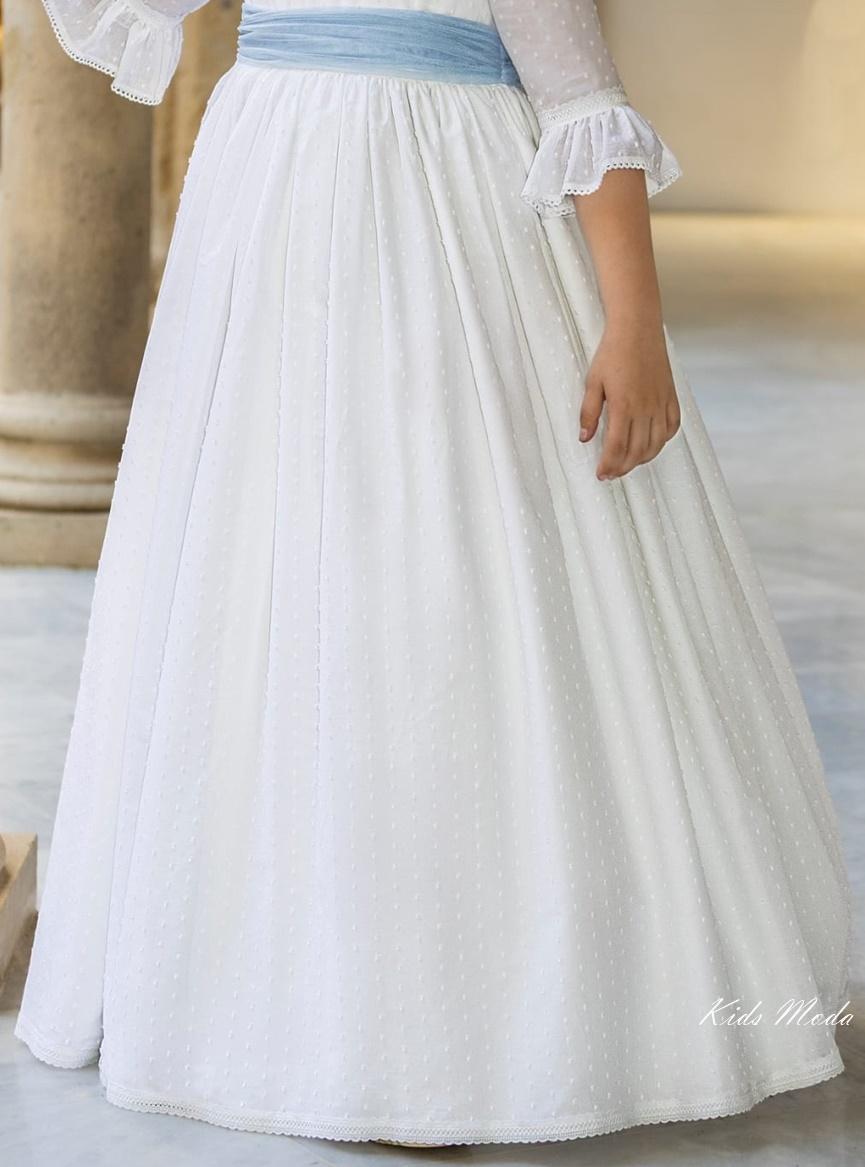 Vestido de Comunión Miguel Serrano 2026 – Batista plumeti con Fajín Celeste