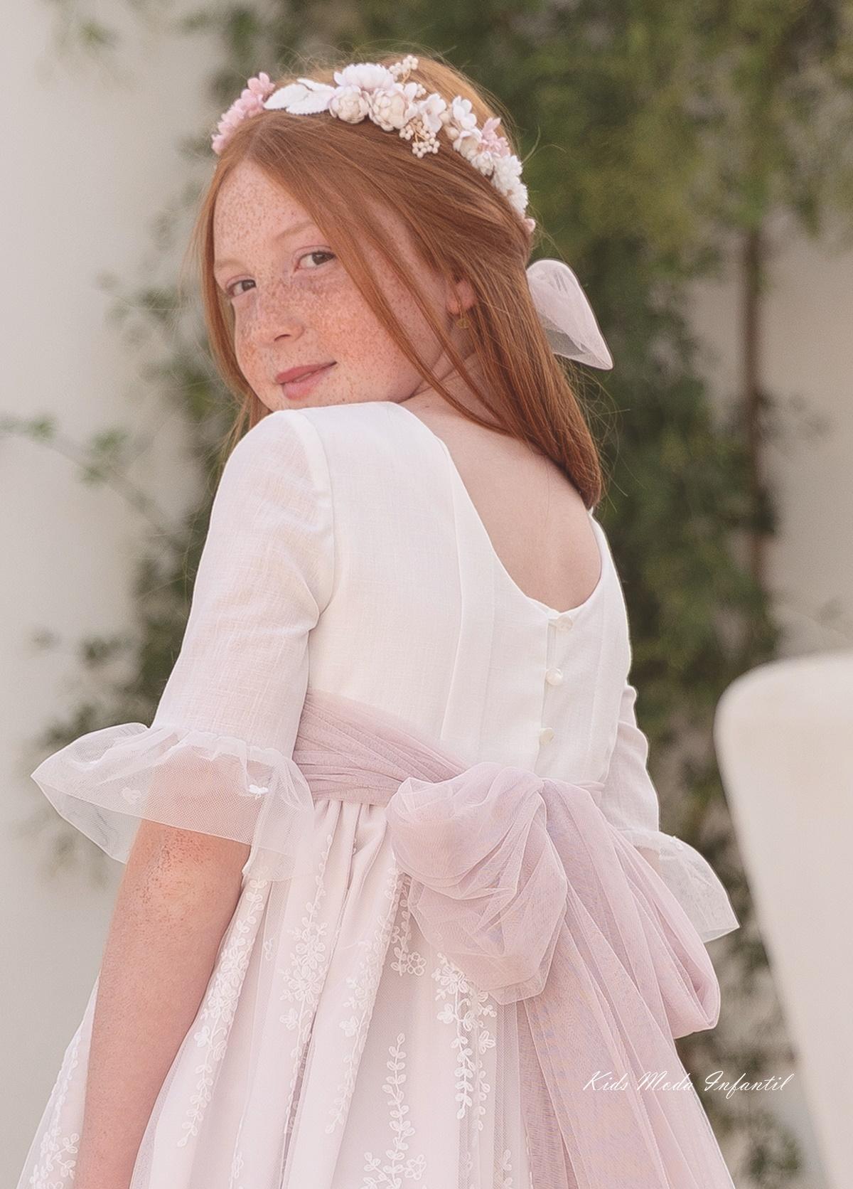 Ideal para vestidos de comunión en tonos empolvados y blanco roto.