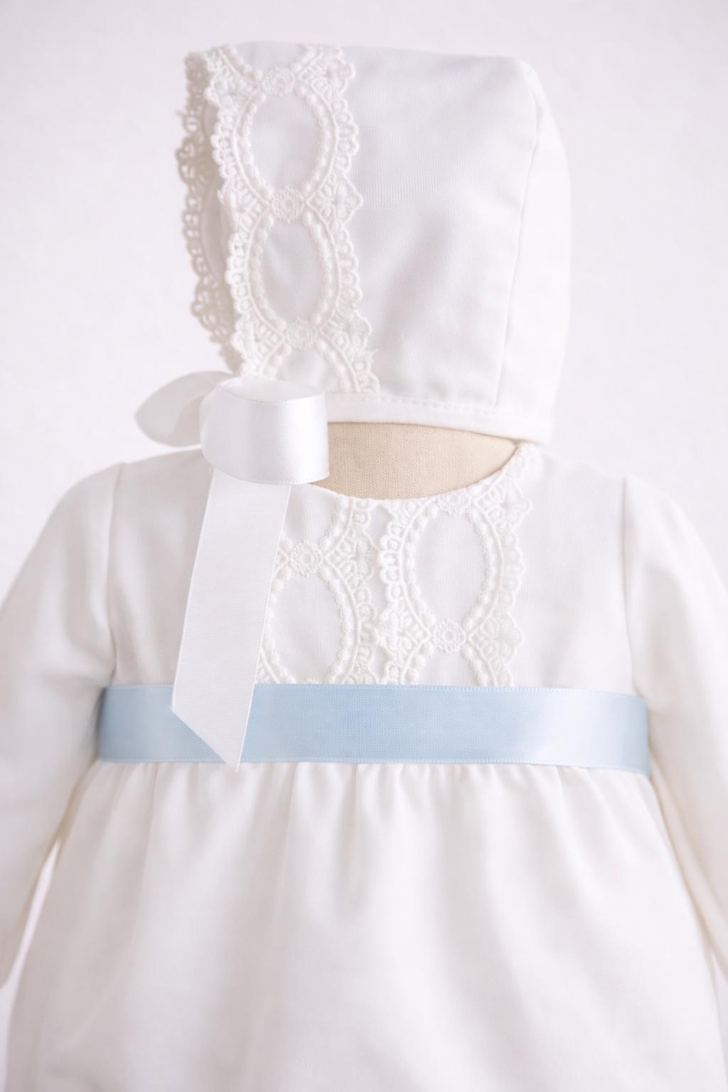 Pelele de Bautizo Blanco en Gasa con Cinta Azul – Eva Martínez Artesanía familia 6