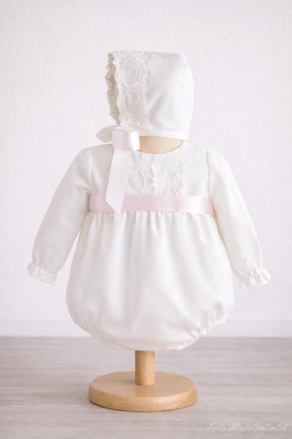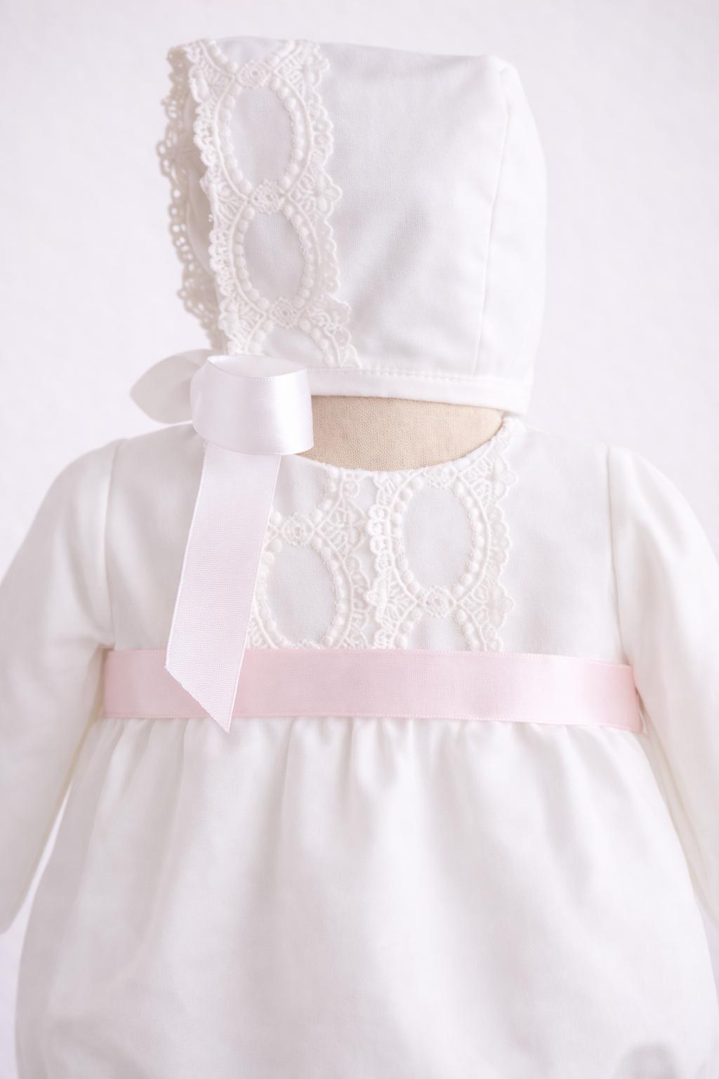 Pelele de Bautizo Blanco en Gasa con Cinta Rosa Bebé – Eva Martínez Artesanía familia 6