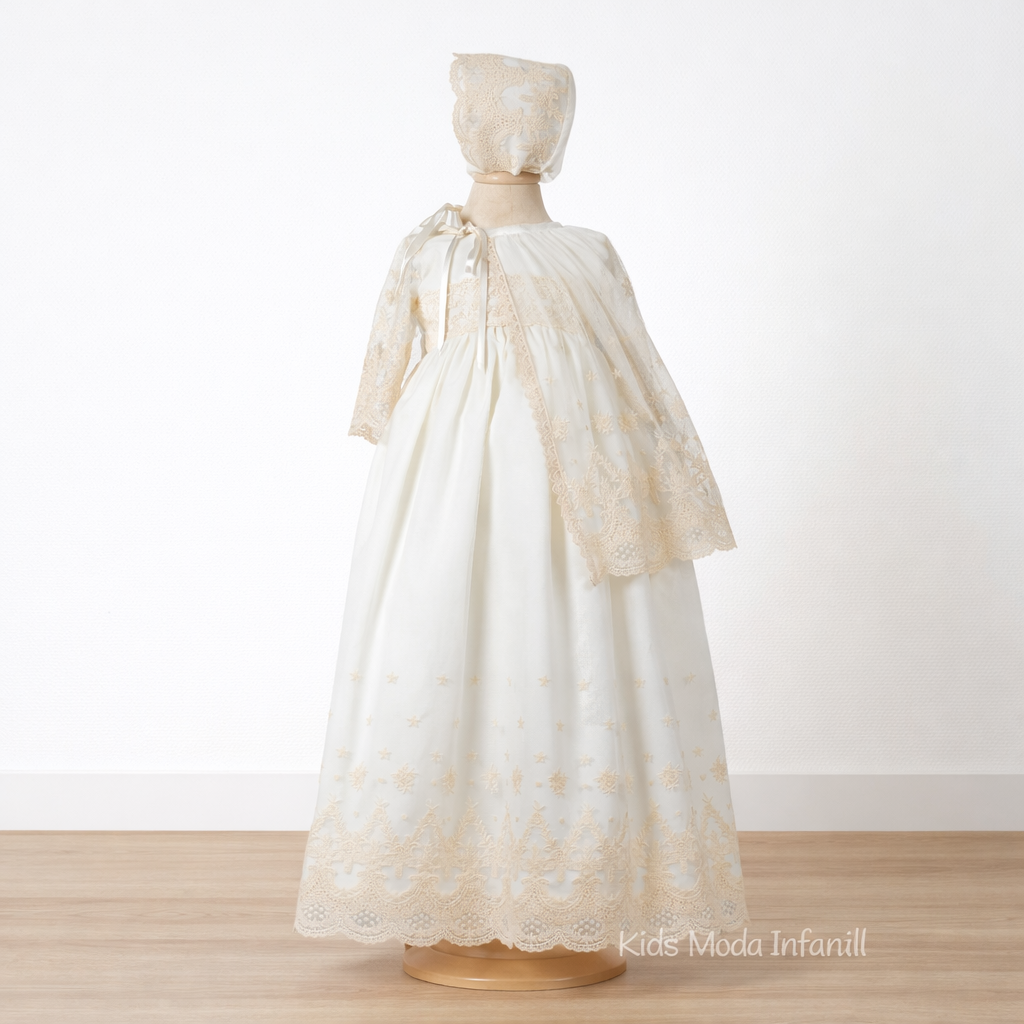 Faldón de Bautizo Bebé Alba Real con Capota | Kids Moda Infantil