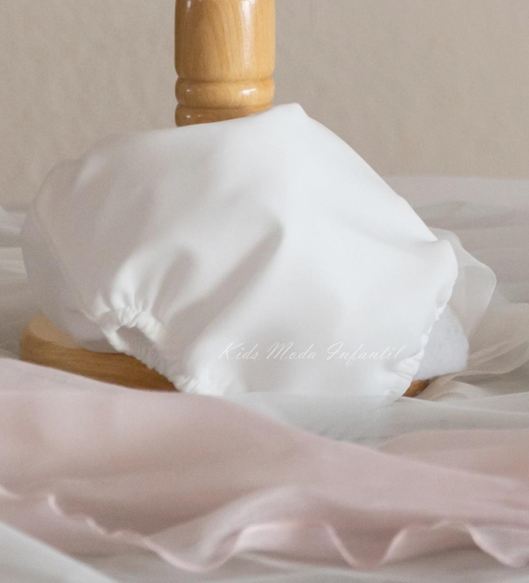 Si quieres tener el conjunto de bautizo bebe al completo añade al carrito el faldón bautizo de bebe blanco, capota y cubre pañal a juego. Colección Familia 6 Eva Martínez Artesanía.