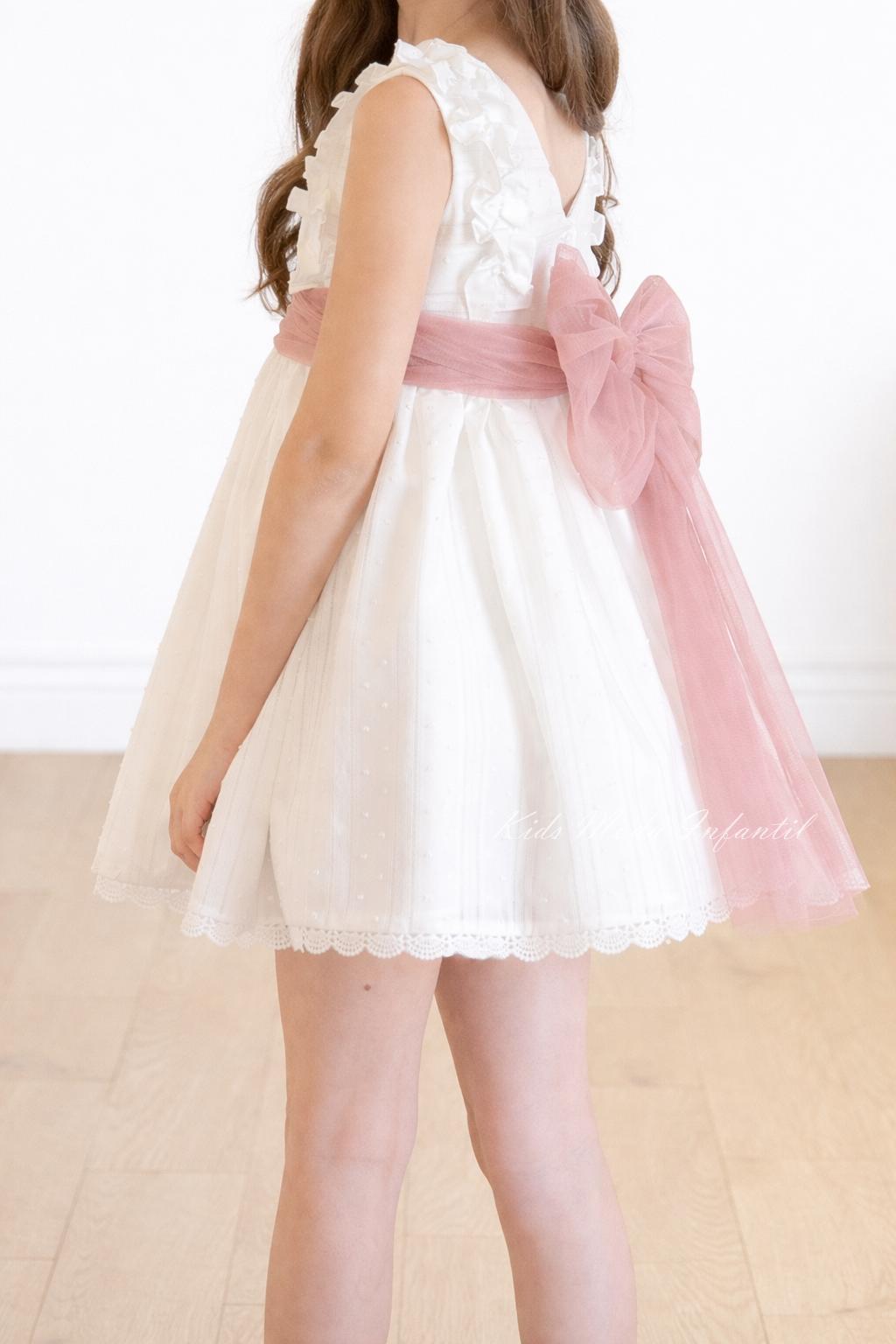 Vestido ceremonia y arras niña con fajín rosa empolvado – Familia 6