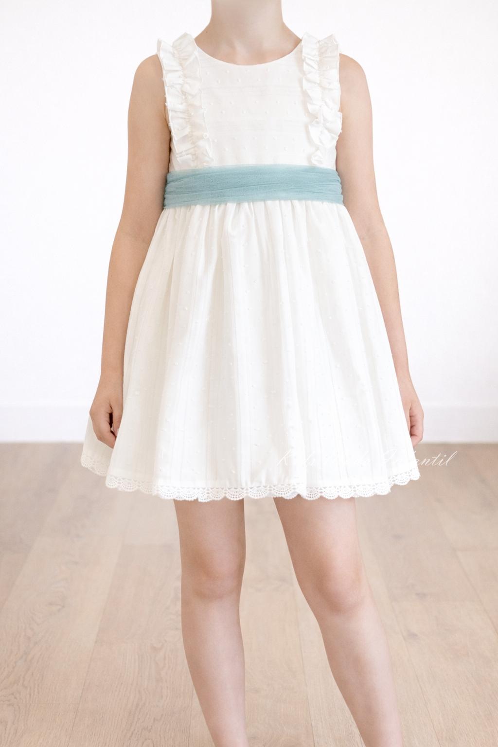 Vestido Ceremonia y Arras Niña con Fajín Verde Agua – Eva Martínez Artesanía Familia 6
