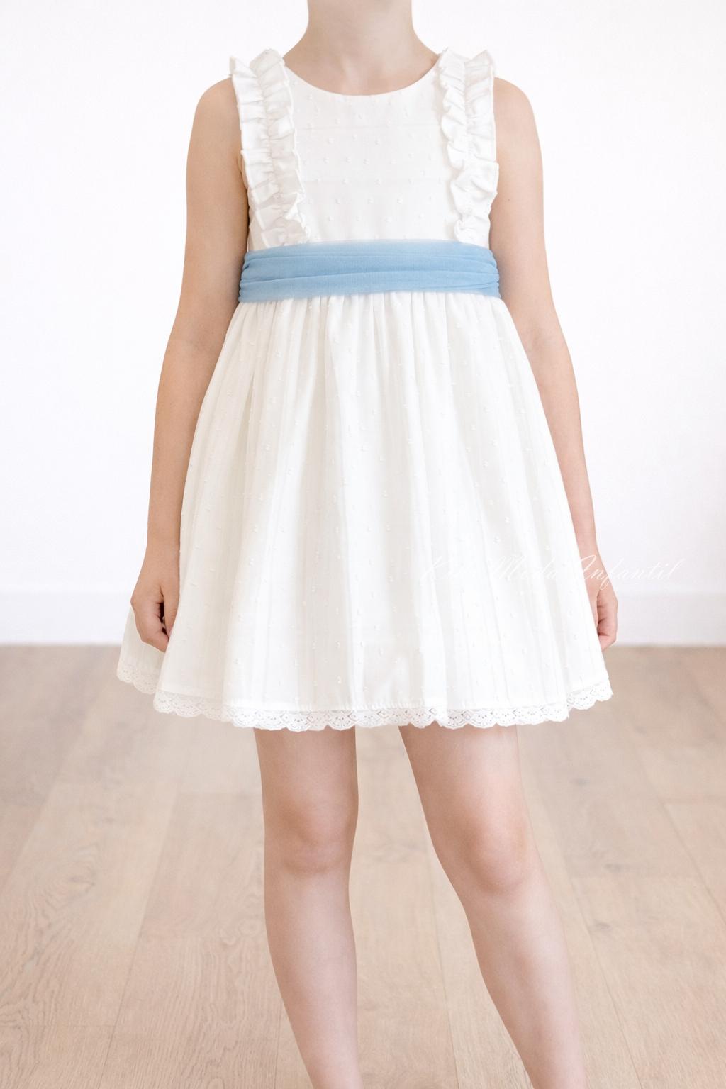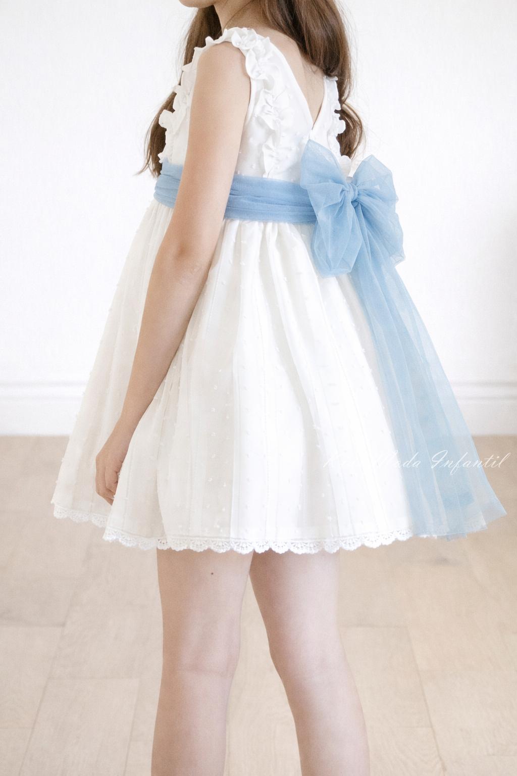 Vestido ceremonia y arras niña con fajín azul celeste – Familia 6