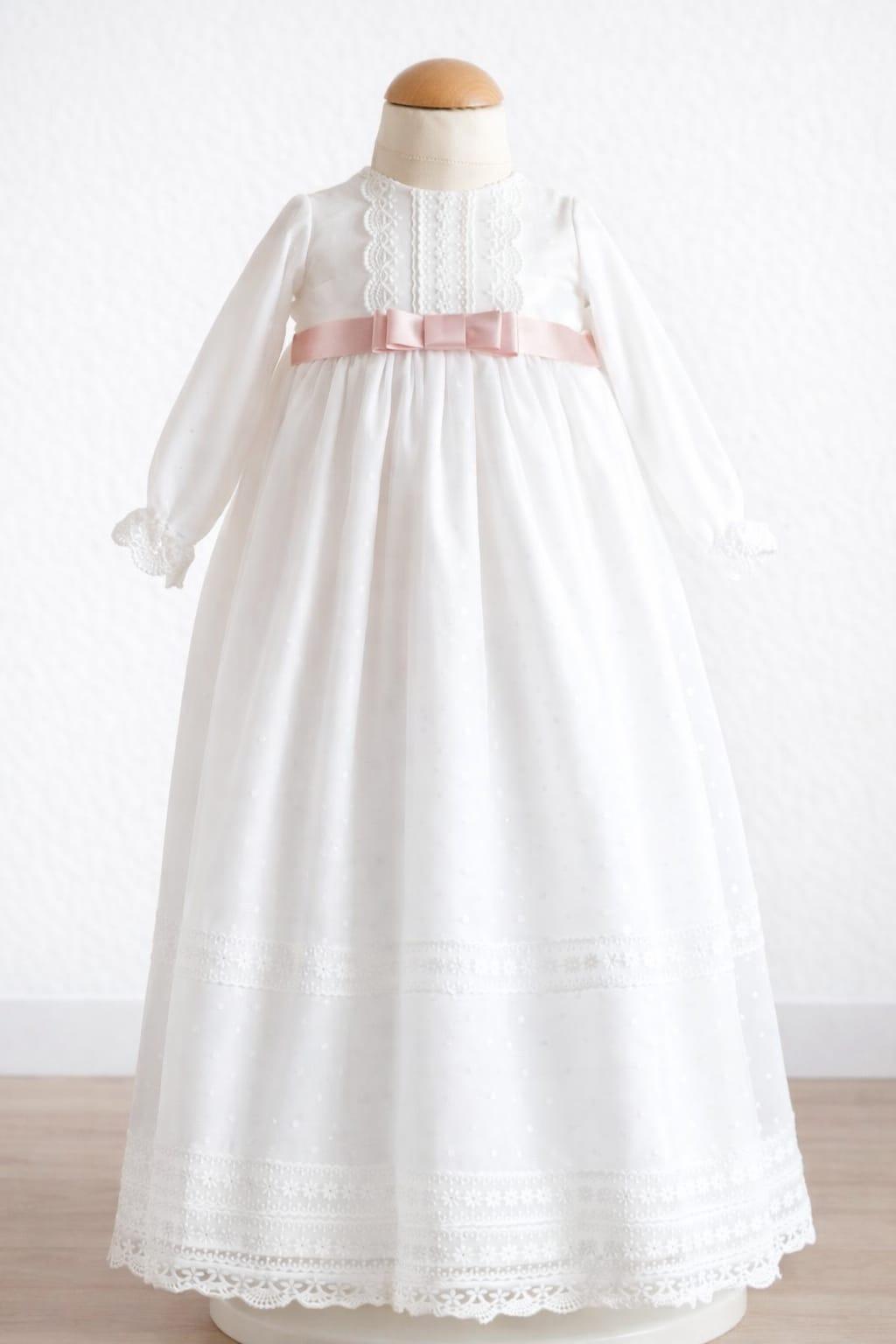 Faldón de Bautizo para Bebé en Tul Blanco con Cinta de Raso Rosa Empolvado – Eva Martínez Artesanía – Familia 2