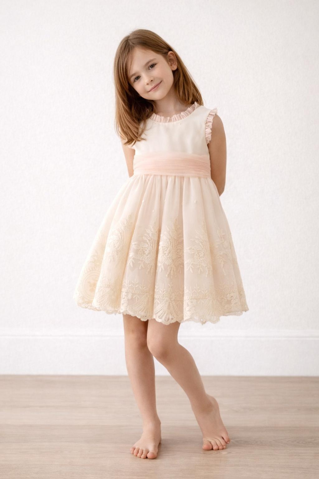 Vestido Ceremonia Arras para Niña en Tul Beige y Melocotón – Dulzura Elegante