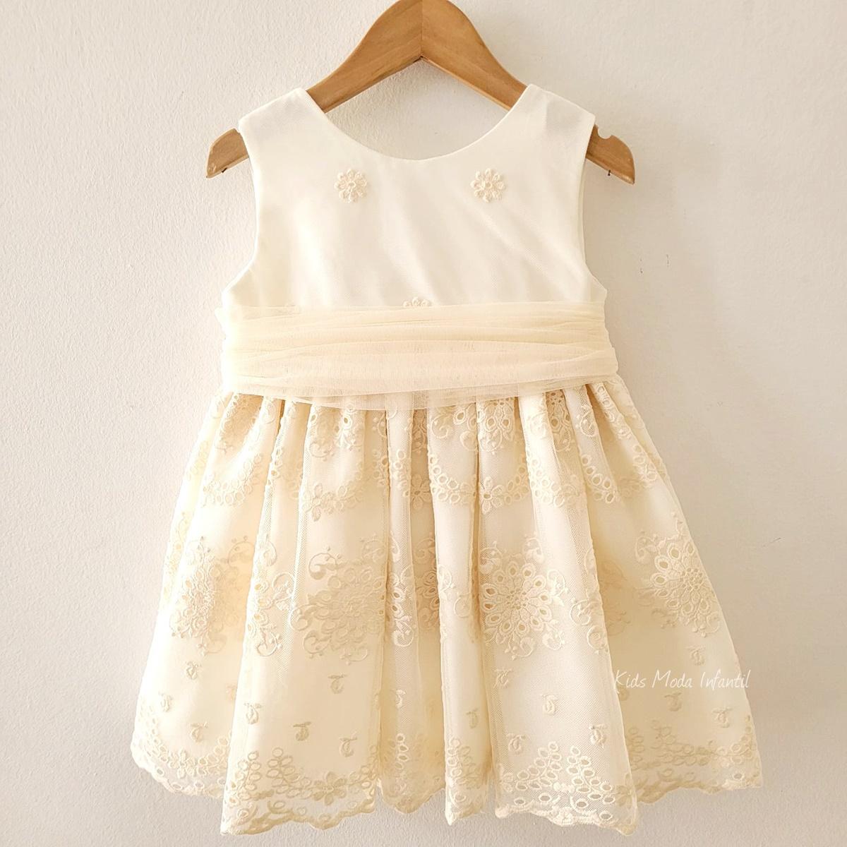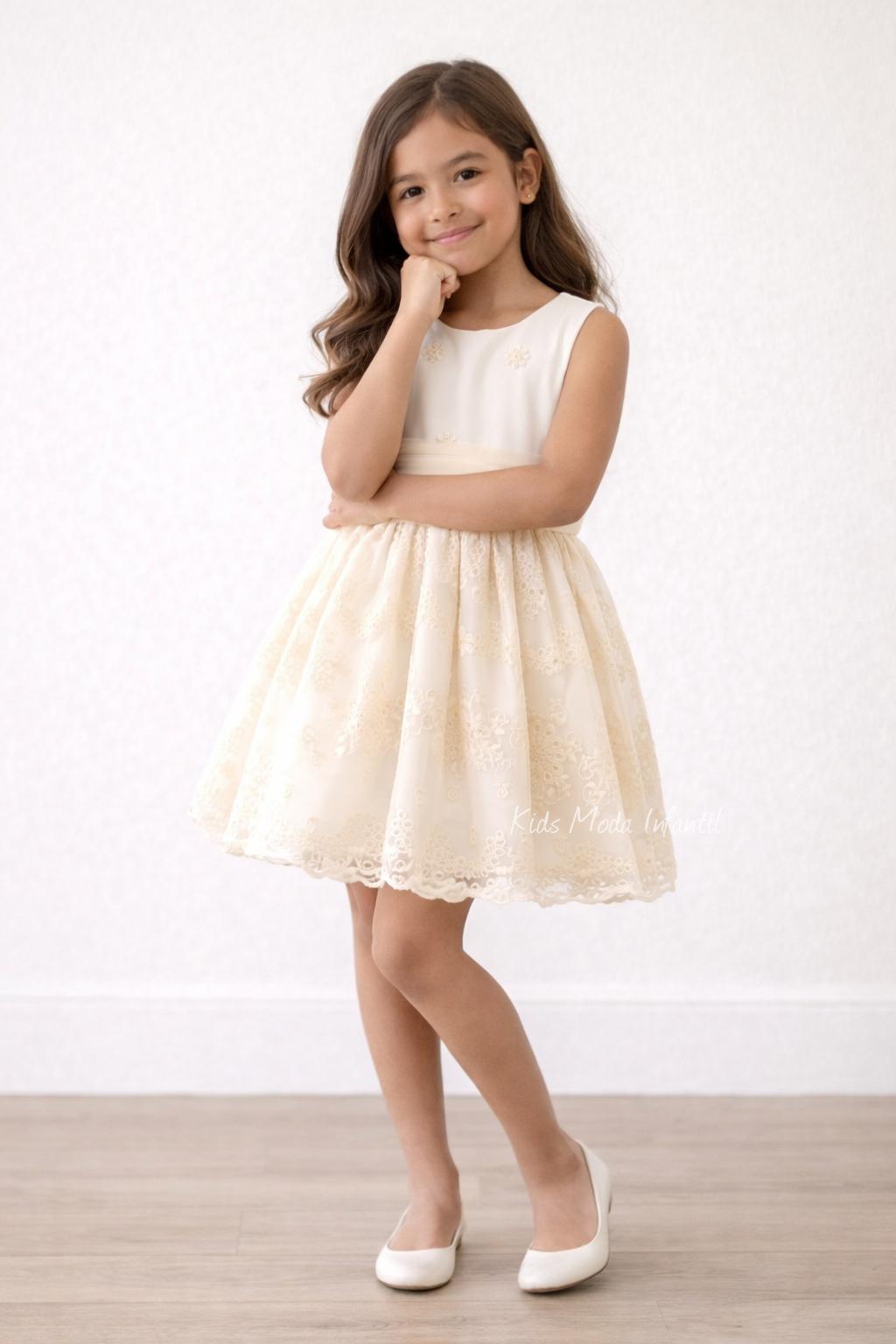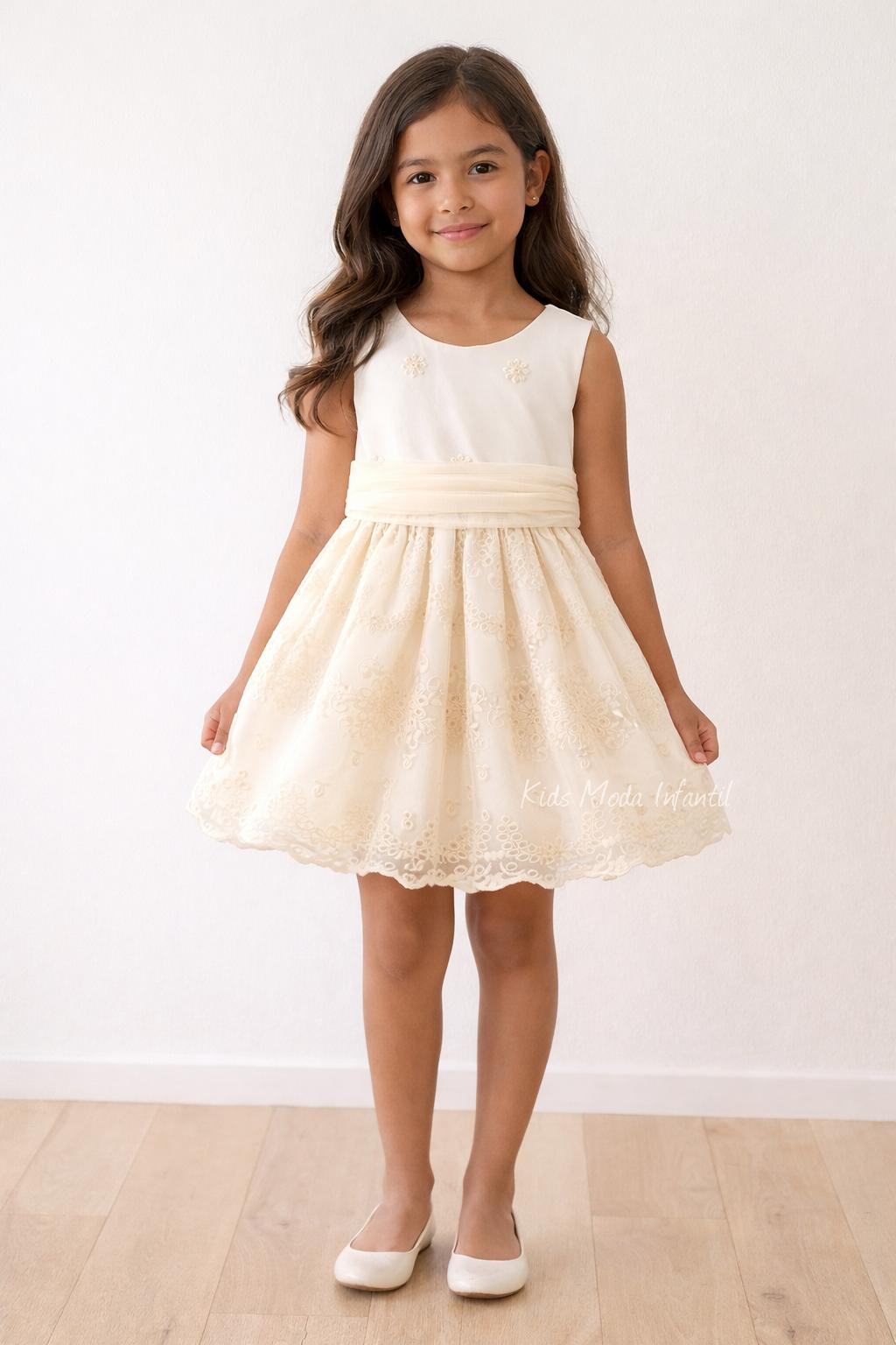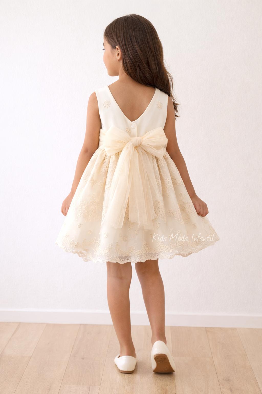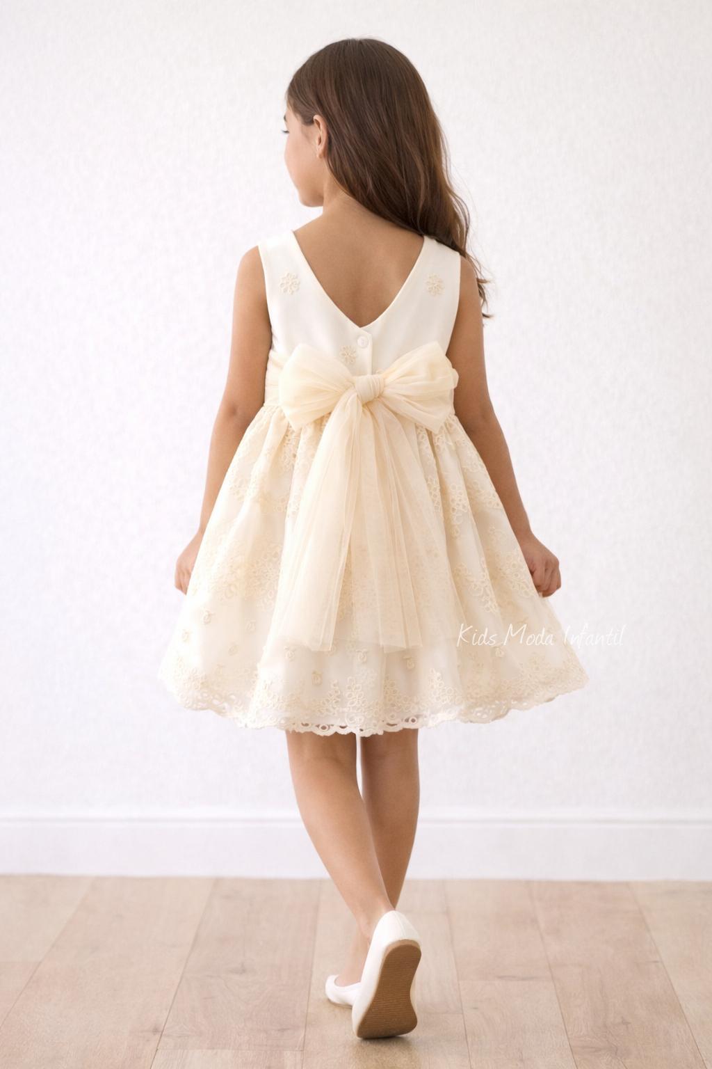 Vestido Ceremonia Arras para Niña en Tul Beige Bordado – Kids Moda Infantil