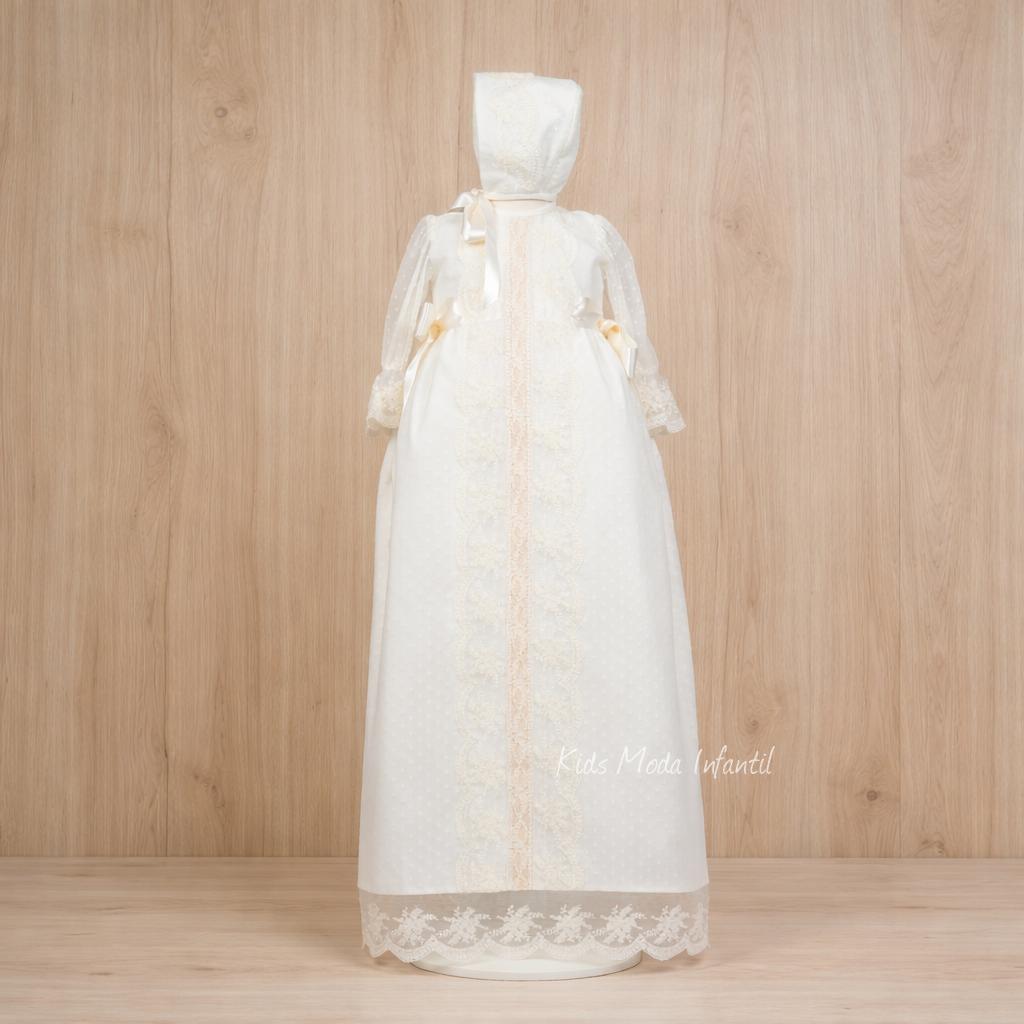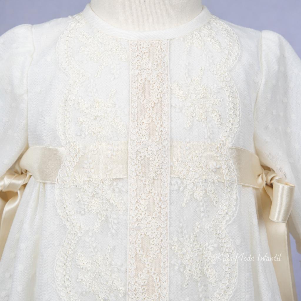 El faldón de bautizo bebé Encaje Real, disponible en Kids Moda Infantil, es una prenda de ceremonia pensada para vestir al bebé con elegancia y tradición en uno de los momentos más especiales de su vida. Su diseño clásico y refinado lo convierte en una opción ideal para bautizos, celebraciones religiosas y sesiones fotográficas.