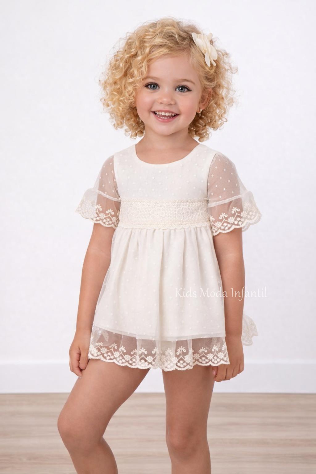 Ideal para combinar con tocados, diademas, chaquetas o zapatitos de ceremonia disponibles en Kids Moda Infantil.