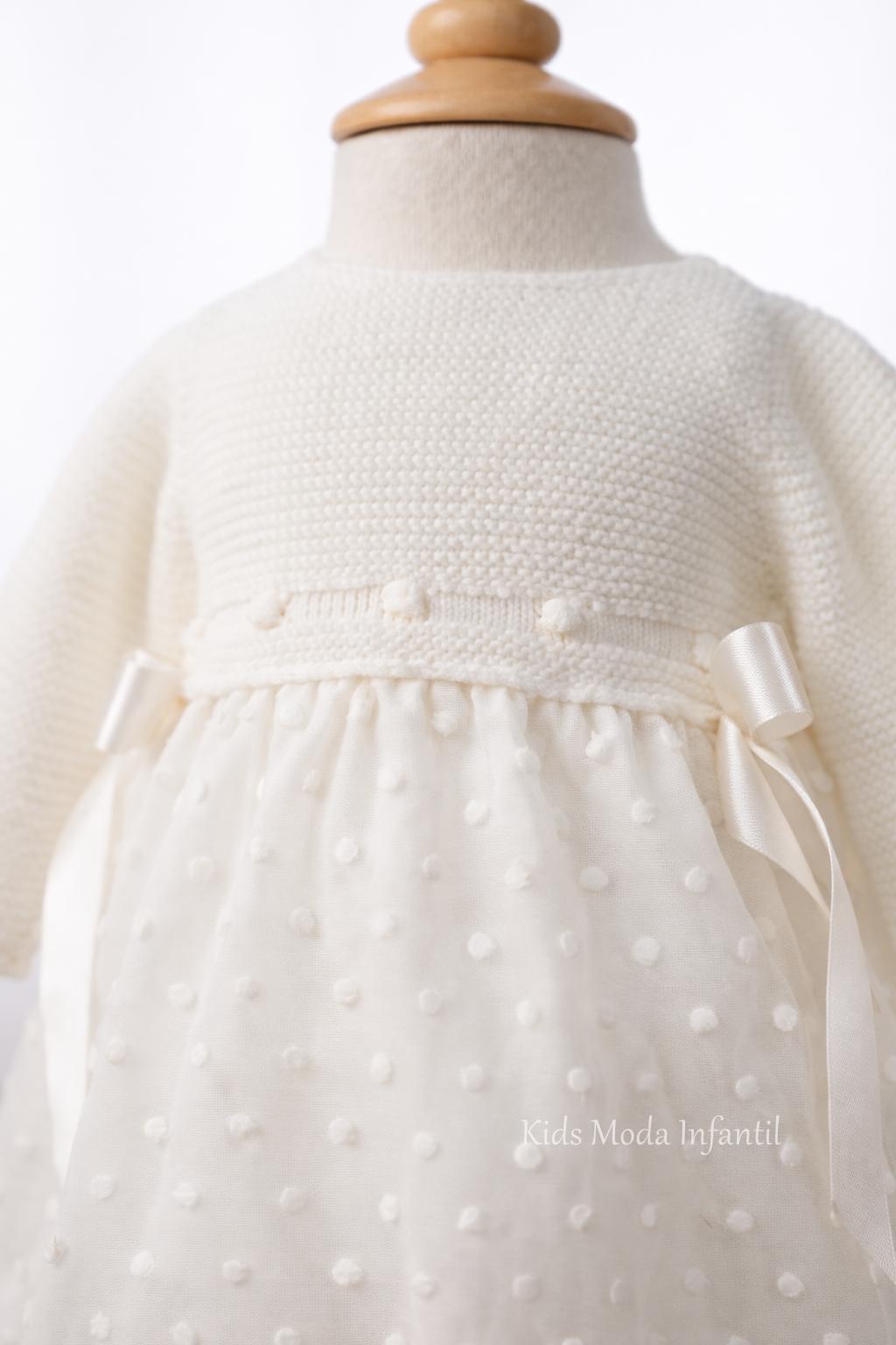 Es una opción perfecta para bautizos, ceremonias, presentaciones y eventos especiales, pudiendo combinarse con chaquetas, capotas o complementos a juego para crear un conjunto completo y armonioso.