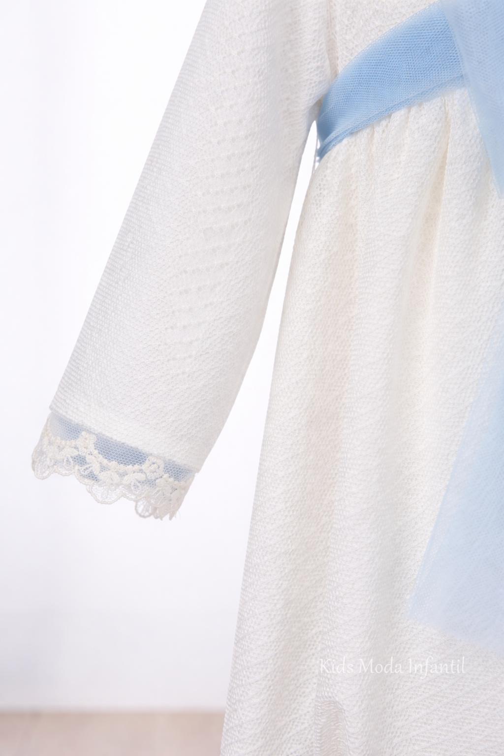 PELELE BAUTIZO BEBE TUL ESTAMPADO CON LAZO TUL AZUL – Ref. 25B3944