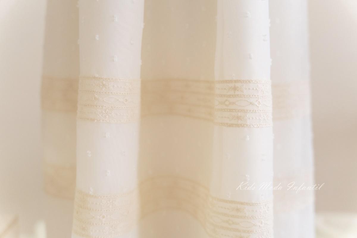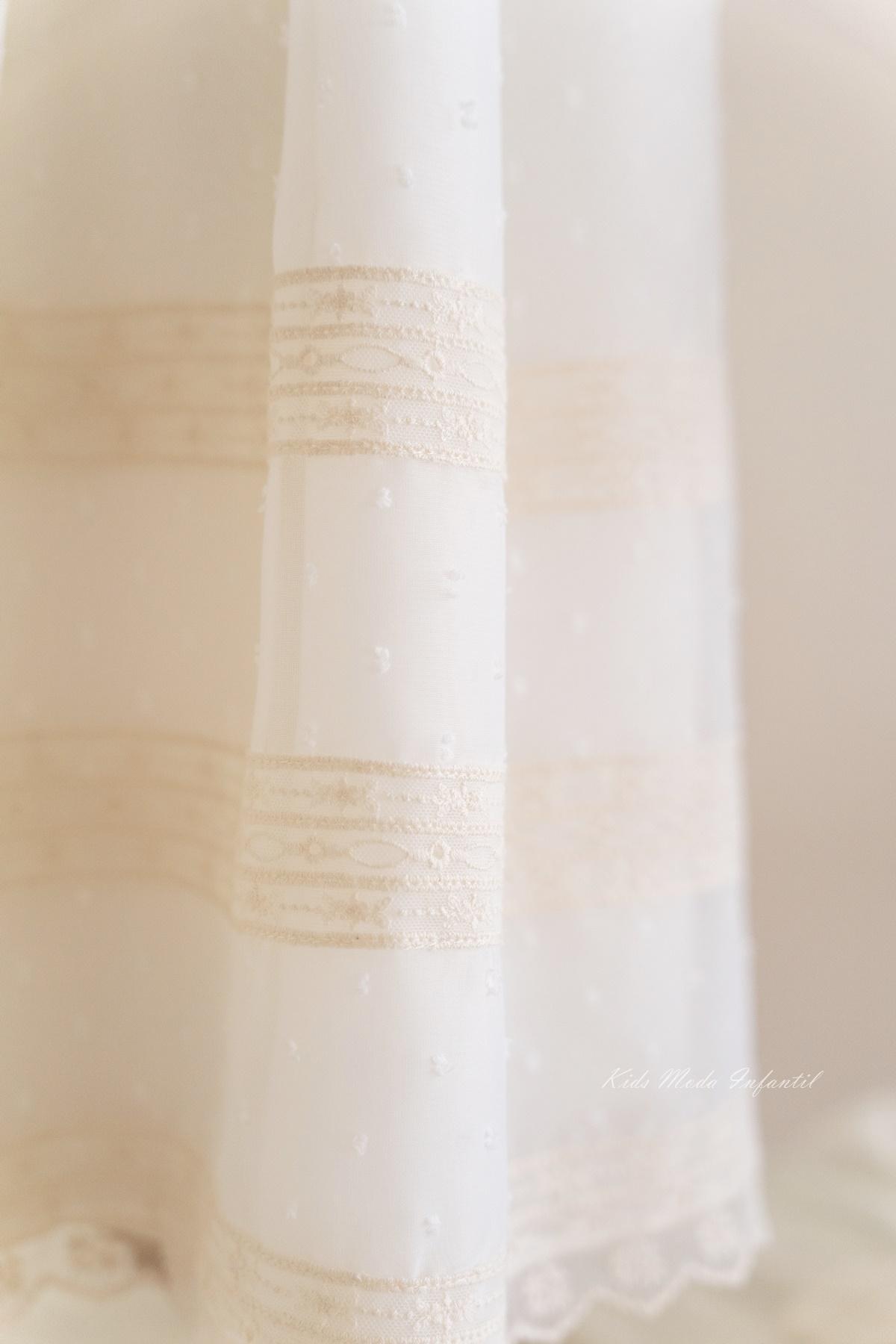 El plumeti cristal beige aporta una textura ligera y sofisticada, ideal para bautizos tradicionales con un estilo clásico y atemporal. Su diseño extra largo ofrece una caída elegante y vaporosa, con posibilidad de adaptarlo en versión larga o corta según las necesidades de cada familia.