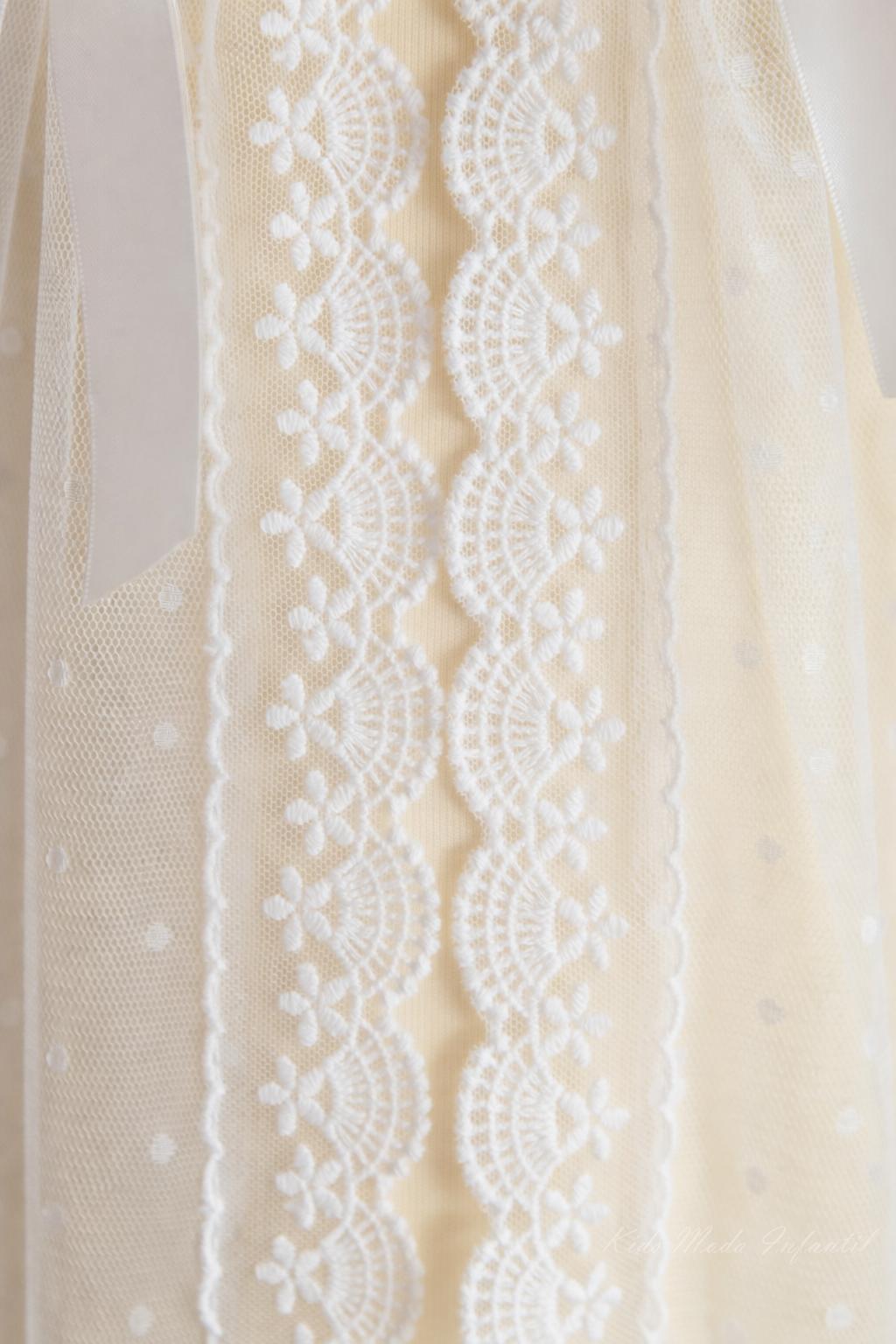 Faldón de bautizo para bebé en tul blanco con lazo blanco manga corta – Familia 2 | Eva Martínez Artesanía | Kids Moda Infantil