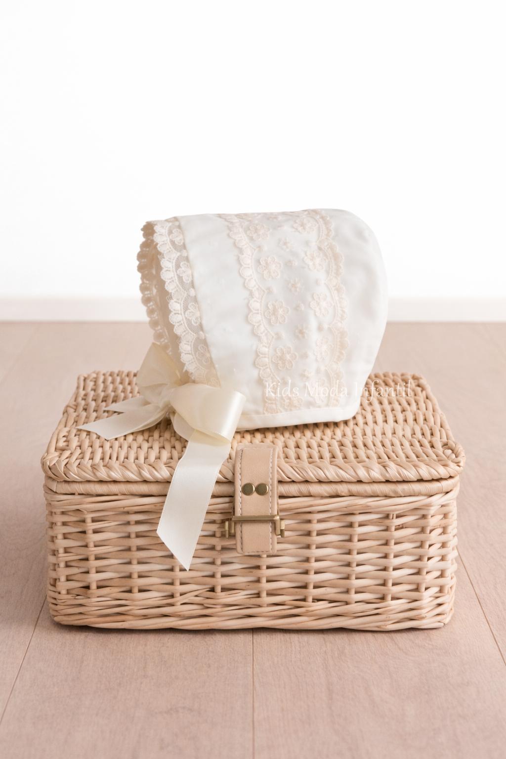 El tejido en tul bodoque beige ofrece una textura suave y ligera, ideal para ceremonias celebradas en épocas cálidas. Su diseño unisex, válido tanto para niño como para niña, lo convierte en una opción versátil y atemporal.